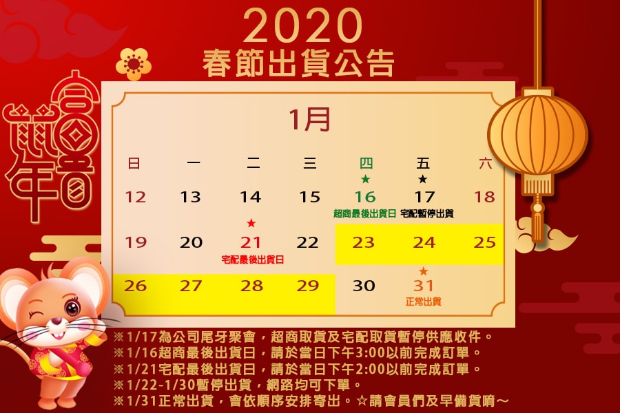 ※ 1/17 is the company’s tail teeth gathering, the over-the-counter pick-up and home delivery pick-up will suspend the supply of receipts.